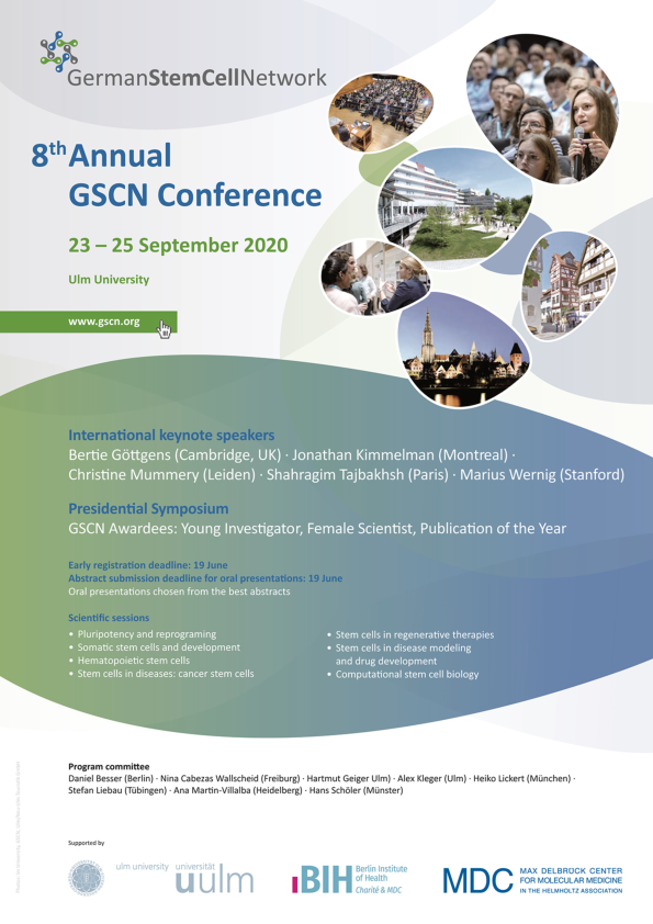 © Thomas Oberländer Konferenz 8th Annual GSCN Conference 23. September 2020, 11:00 Uhr - 25. September 2020, 16:00 Uhr Venue Virtual Meeting Zeit 23. September 2020, 11:00 Uhr - 25. September 2020, 16:00 Uhr Zum Kalender hinzufügen Program LinksGSCN Website Dokumente GSCN_Conference_Poster (PDF, 1.39 MB) GSCN_Conference_Poster (PDF, 1.39 MB) Zum Kalender hinzufügen Organisator*innen German Stem Cell Network Antje Veldhues030 9406 2487gscn.office@mdc-berlin.deGerman Stem Cell Network Daniel Bessergscn.office@mdc-berlin.deGerman Stem Cell Network Weitere Veranstaltungen Okt 14 2026 Konferenz Brain Tumor Meeting 2026 MDC.C