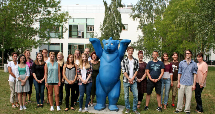 Institut & Campus / 24. September 2015 / Vera Glaßer Willkommen am MDC Enlarge Willkommen am MDC! An ihrem ersten Arbeitstag Anfang September war es noch Sommer: die neuen Auszubildenden des MDC und ihre Ausbilder und Ausbilderinnen – gemeinsam mit dem Campus-Maskottchen. Foto: Christian Steinborn, MDC Willkommen am MDC! An ihrem ersten Arbeitstag Anfang September war es noch Sommer: die neuen Auszubildenden des MDC und ihre Ausbilder und Ausbilderinnen – gemeinsam mit dem Campus-Maskottchen. Foto: Christian Steinborn, MDC