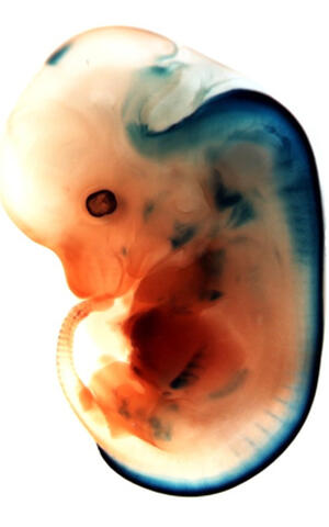 Blue staining reveals that the CNP signal is expressed in the spine of mouse embryos during the phase at which sensory axons enter the DREZ. Encountering the signal causes them to branch.