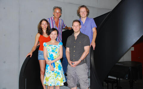 1st row from left: Zhuo Fang and Björn Schwanhäusser 2nd row from left: Nadine Thierfelder 3rd row from left: Professor Nikolaus Rajewsky and Dr. Matthias Selbach (Photo: Jonas Maaskola/​Copyright: MDC)