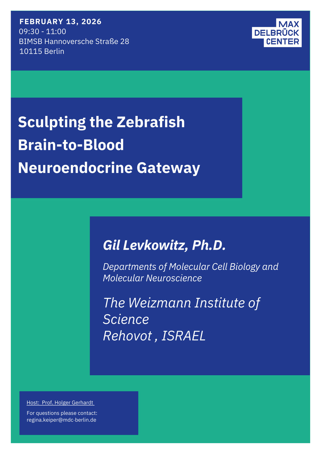 CANCELLED: Gil Levkowitz: Sculpting the Zebrafish Brain-to-Blood Neuroendocrine Gateway